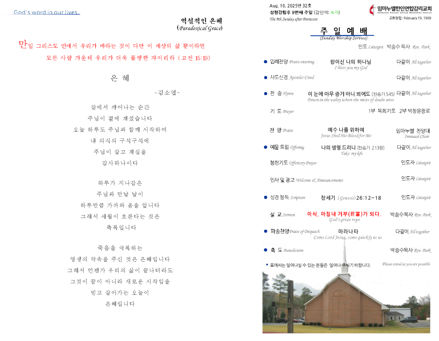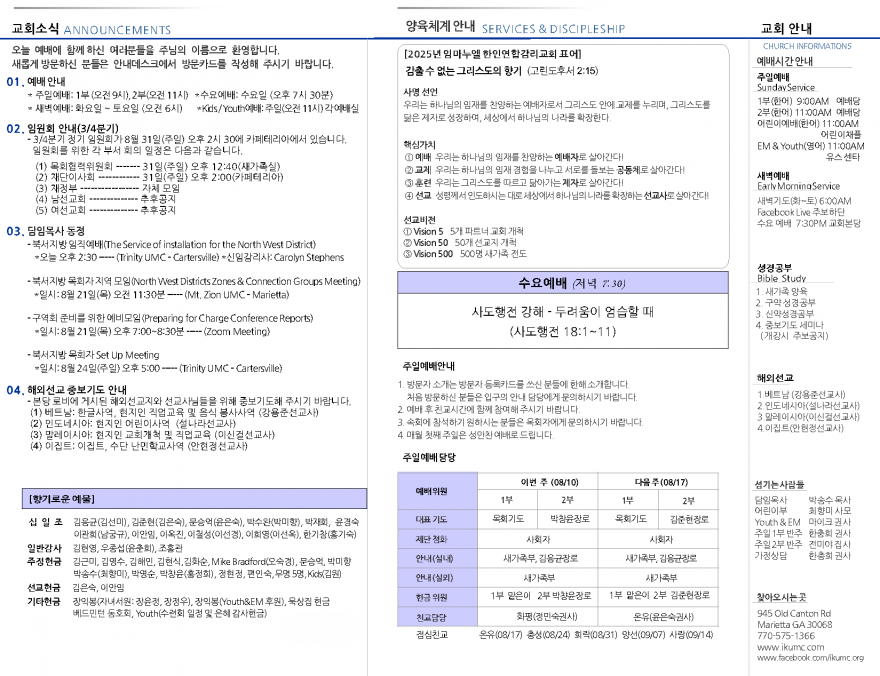 2025년 8월 10일 페이지 정보 작성자 임마누엘한인연합감리교회 댓글 0건 조회 1,009회 작성일 25-08-10 00:17 본문 2025년 8월 10일 목록 이전글2025년 8월 17일 25.08.17 다음글2025년 8월 3일 25.08.03