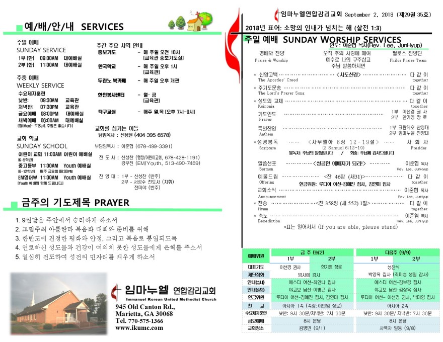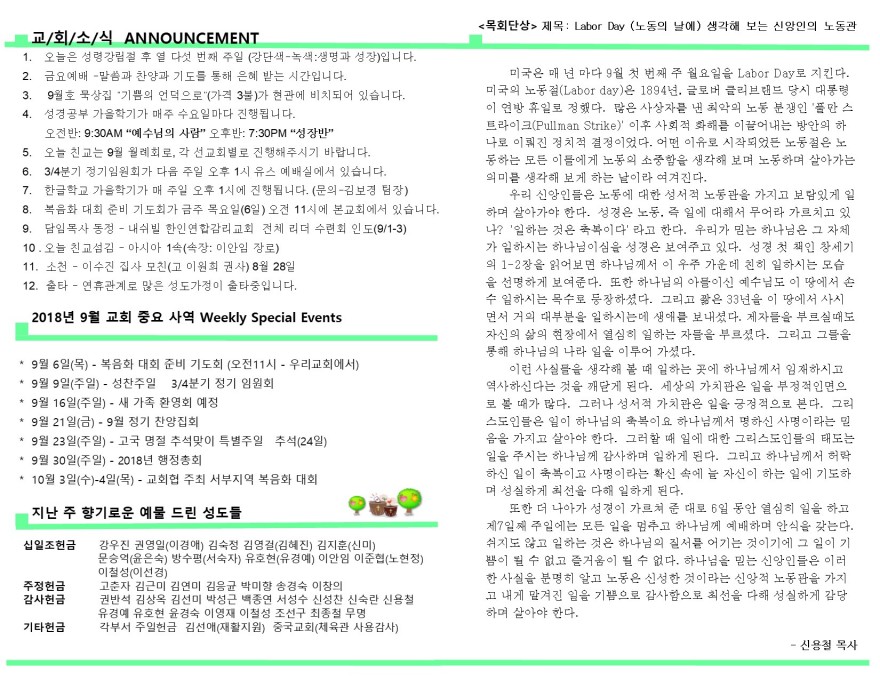 2018년 9월 2일 페이지 정보 작성자 임마누엘한인연합감리교회 댓글 0건 조회 5,368회 작성일 18-09-01 22:46 본문 2018년 9월 2일 주보 목록 이전글2018년 9월 9일 18.09.09 다음글2018년 8월 26일 18.08.26