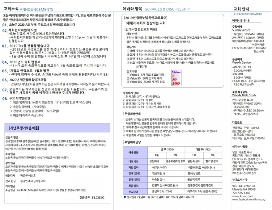 2020년 1월 5일 주일예배 주보 페이지 정보 작성자 임마누엘한인연합감리교회 댓글 0건 조회 5,246회 작성일 20-01-06 07:11 본문 2020년 1월 5일 주일예배 주보 목록 이전글2020년 1월 12일 주일예배 주보 20.01.13 다음글2019년 12월 29일 주일예배 주보 19.12.30