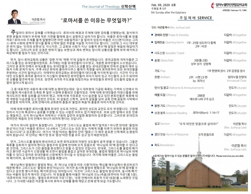 2020년 2월 9일 주일예배 주보 페이지 정보 작성자 임마누엘한인연합감리교회 댓글 0건 조회 5,261회 작성일 20-02-10 03:45 본문 2020년 2월 9일 주일예배 주보 목록 이전글2020년 2월 16일 주일예배 주보 20.02.17 다음글2020년 2월 2일 주일예배 주보 20.02.03