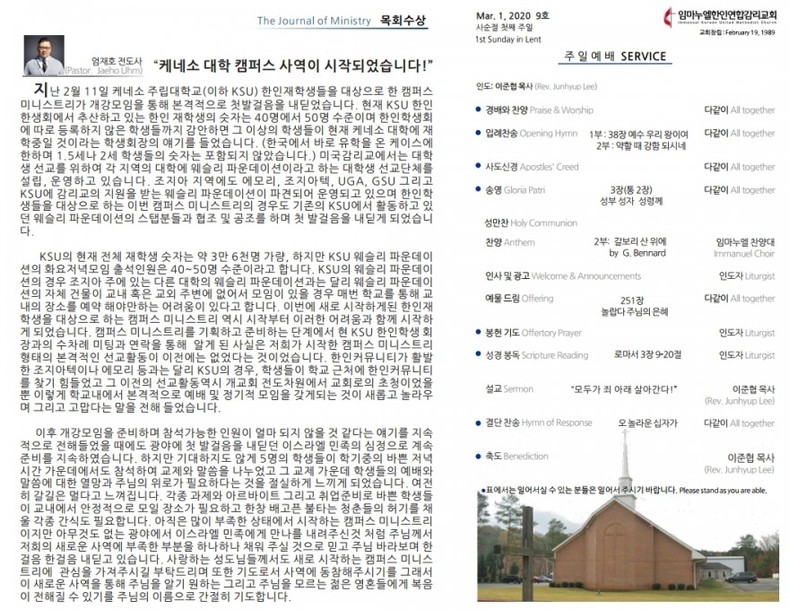 2020년 3월 1일 주일예배 주보 페이지 정보 작성자 임마누엘한인연합감리교회 댓글 0건 조회 5,397회 작성일 20-03-05 07:55 본문 2020년 3월 1일 주일예배 주보 목록 이전글2020년 3월 8일 주일예배 주보 20.03.09 다음글2020년 2월23일 주일예배 주보 20.02.24
